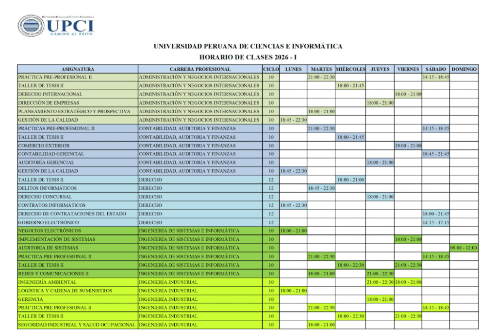 Sabemos la importancia del tiempo, por ello se ha abierto el ciclo 2026-I, te invitamos a que lo veas y te unas. El horario lo podrás ver por facultad en la sección de noticias. Click en más detalles para ver las fechas del ciclo. Más detalles